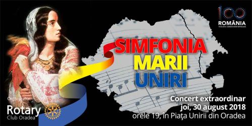 Joi, 30 august 2018, începând cu ora 19.00, va avea loc în Piața Unirii a municipiului Oradea SIMFONIA MARII UNIRI, un concert vocal-simfonic extraordinar dedicat Centenarului.